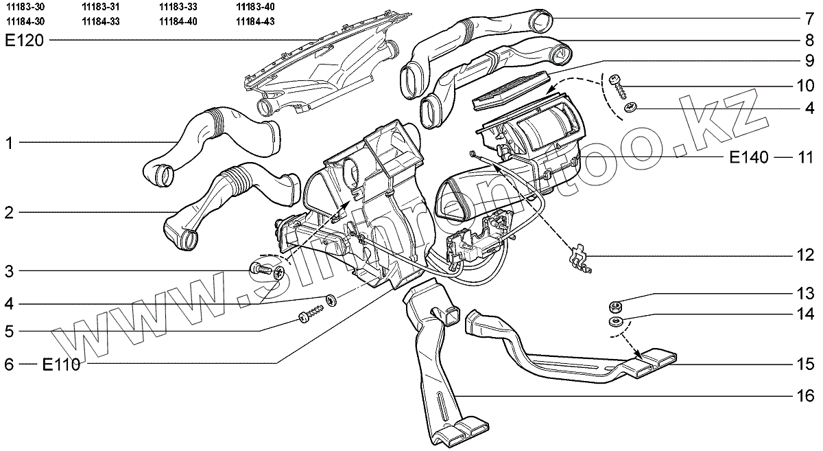 Каталог запасных частей к технике: ВАЗ LADA Kalina 1118. Система вентиляции и отопления