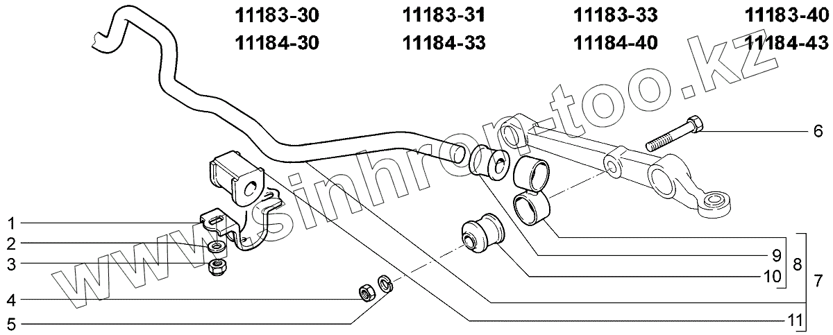Каталог запасных частей к технике: ВАЗ LADA Kalina 1118. Стабилизатор поперечной устойчивости