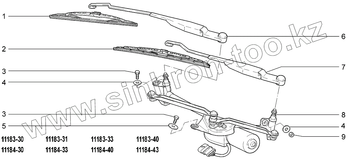 Каталог запасных частей к технике: ВАЗ LADA Kalina 1118. Стеклоочиститель передний