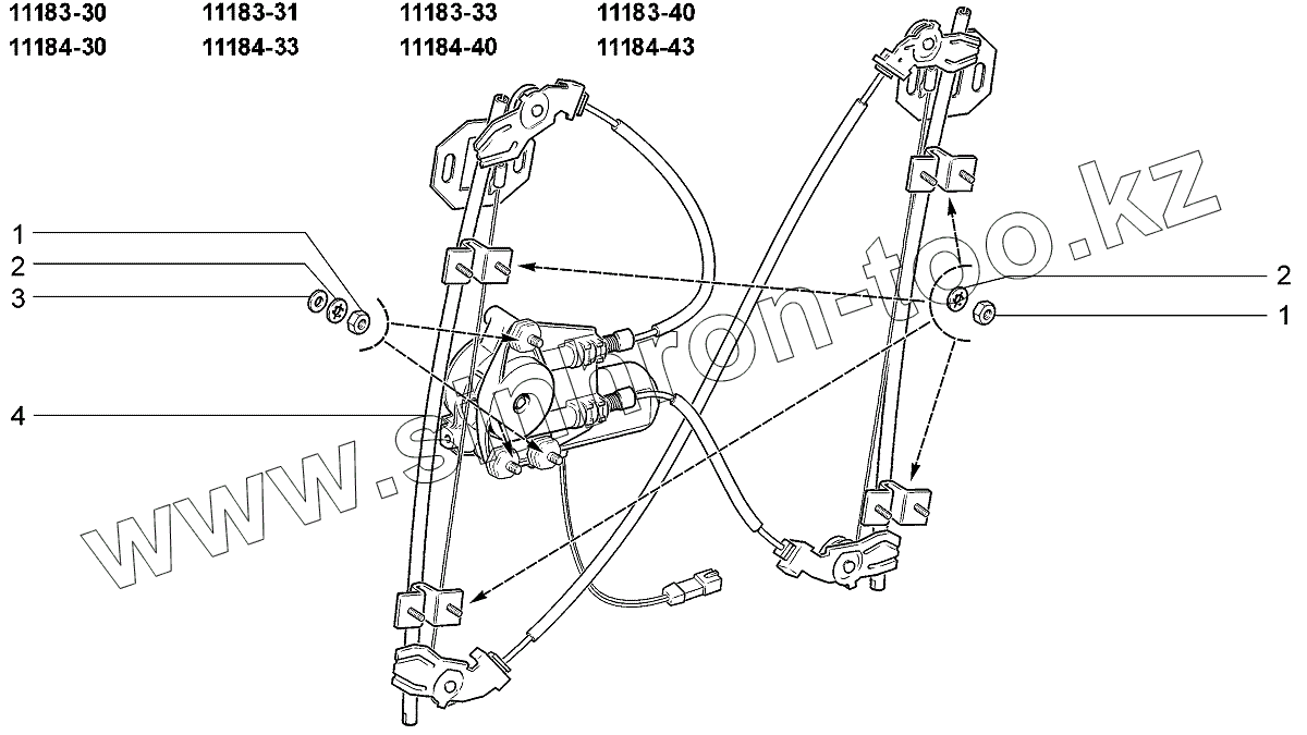 Каталог запасных частей к технике: ВАЗ LADA Kalina 1118. Стеклоподъемники передних дверей