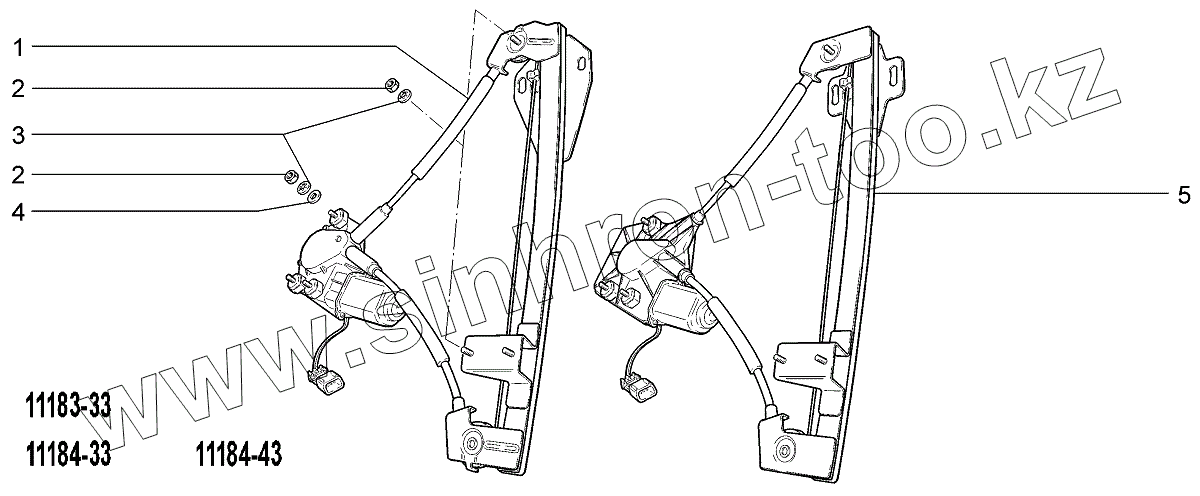 Каталог запасных частей к технике: ВАЗ LADA Kalina 1118. Стеклоподъемники задних дверей