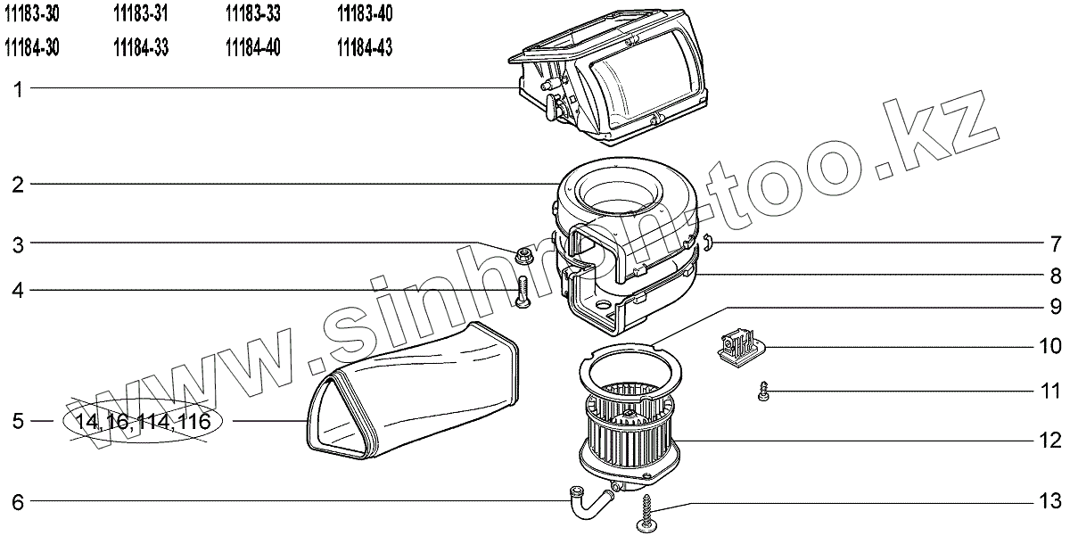 Каталог запасных частей к технике: ВАЗ LADA Kalina 1118. Вентилятор климатической установки
