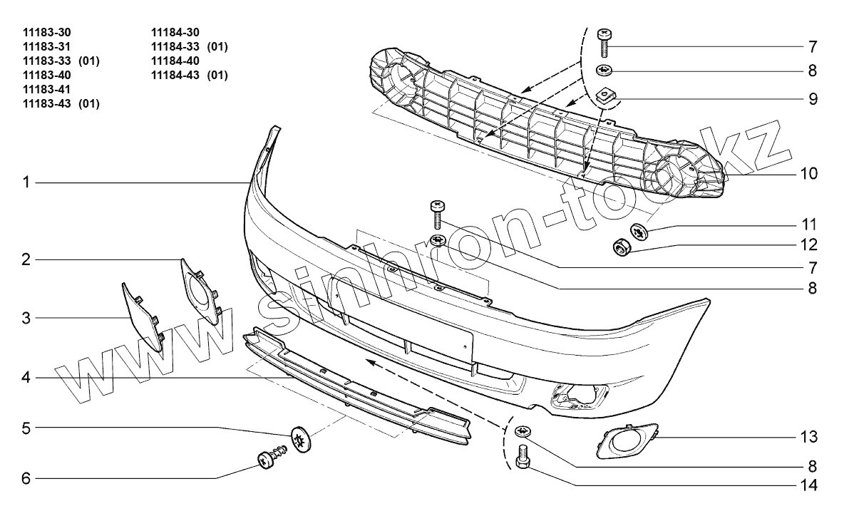 Каталог запасных частей к технике: ВАЗ LADA KALINA 1118. Бампер передний;Front bumper
