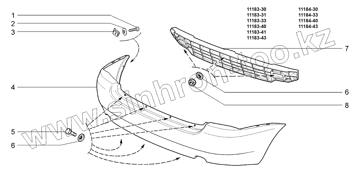 Каталог запасных частей к технике: ВАЗ LADA KALINA 1118. Бампер задний;Rear bumper