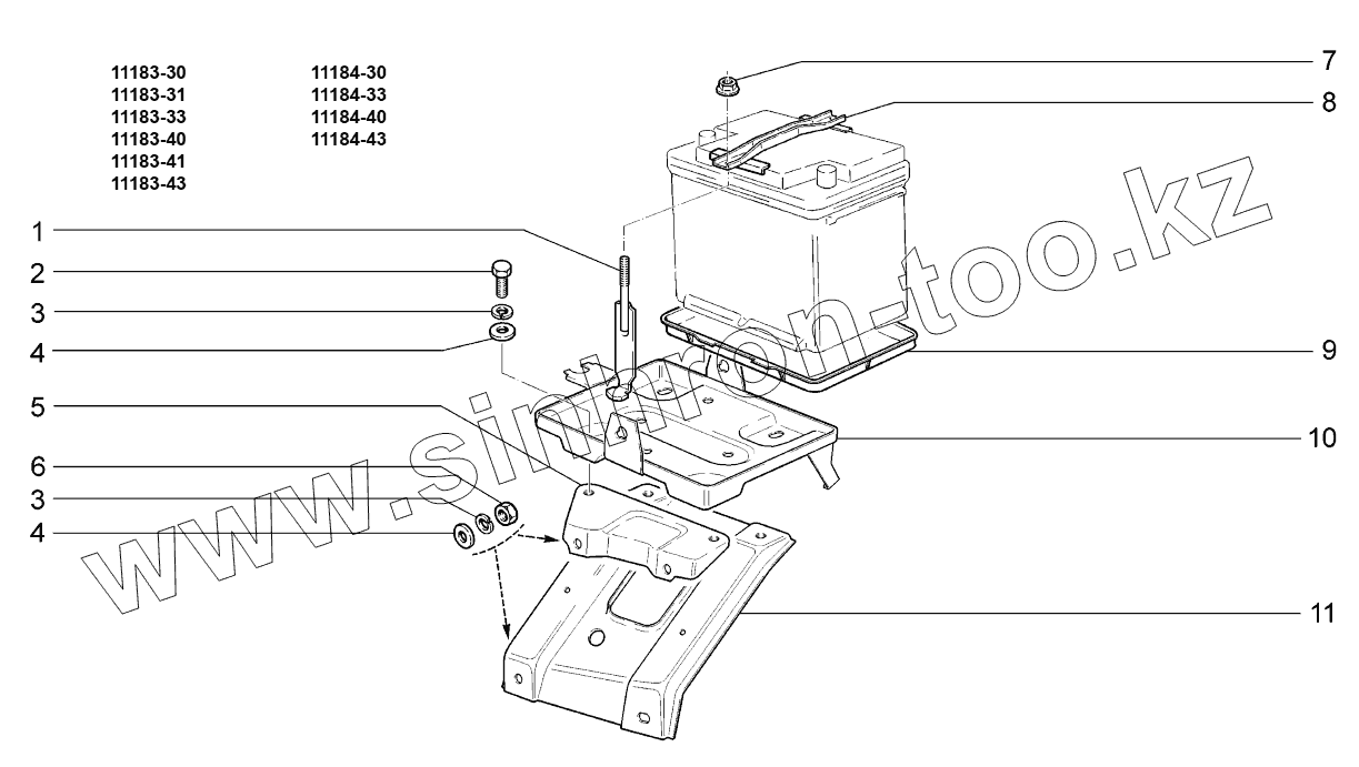 Каталог запасных частей к технике: ВАЗ LADA KALINA 1118. Батарея аккумуляторная;Battery