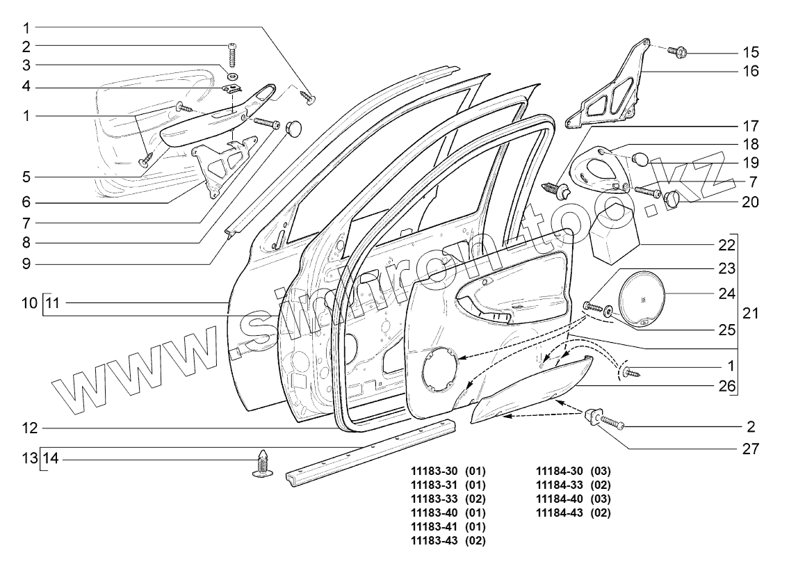 Каталог запасных частей к технике: ВАЗ LADA KALINA 1118. Двери передние;Front doors
