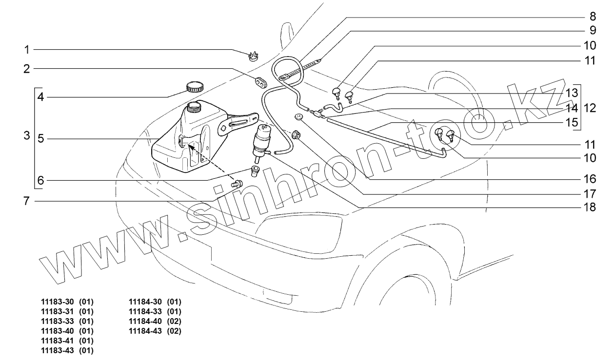 Каталог запасных частей к технике: ВАЗ LADA KALINA 1118. Омыватель ветрового стекла;Windscreen washer