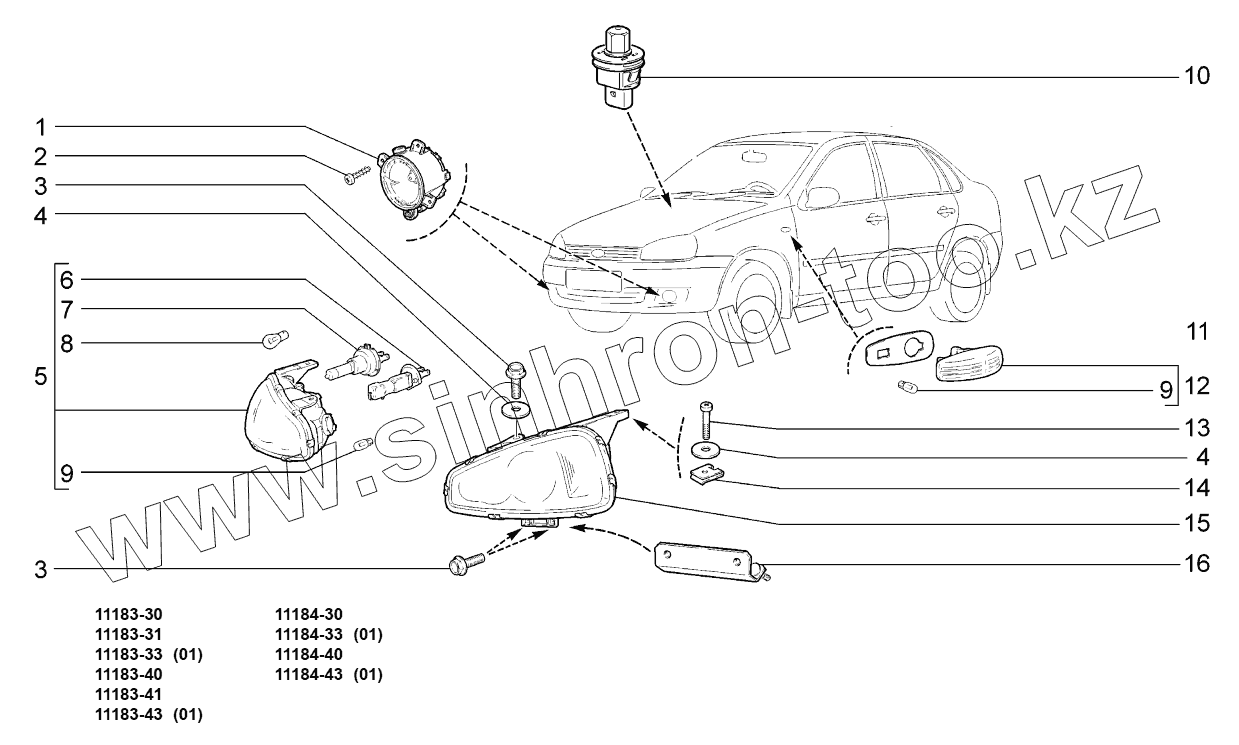 Каталог запасных частей к технике: ВАЗ LADA KALINA 1118. Освещение переднее;Front lights