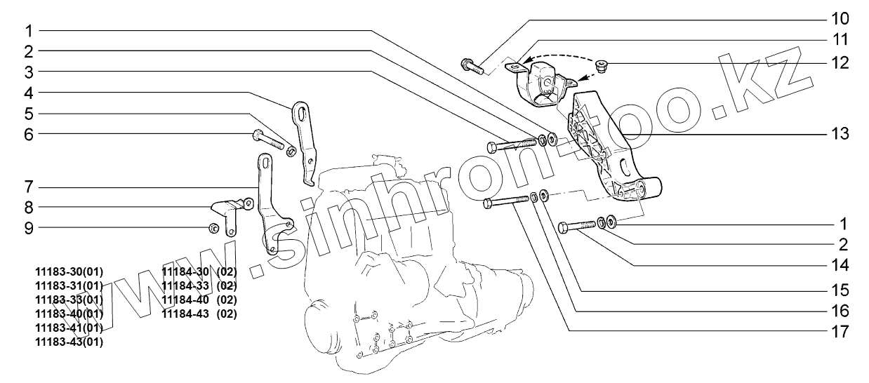 Каталог запасных частей к технике: ВАЗ LADA KALINA 1118. Подвеска двигателя;Engine mounting