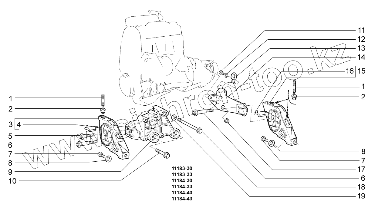 Каталог запасных частей к технике: ВАЗ LADA KALINA 1118. Подвеска двигателя;Engine mounting