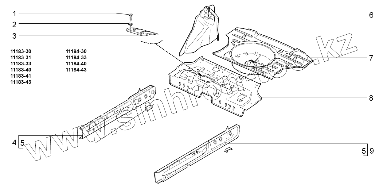 Каталог запасных частей к технике: ВАЗ LADA KALINA 1118. Пол задний;Rear floor