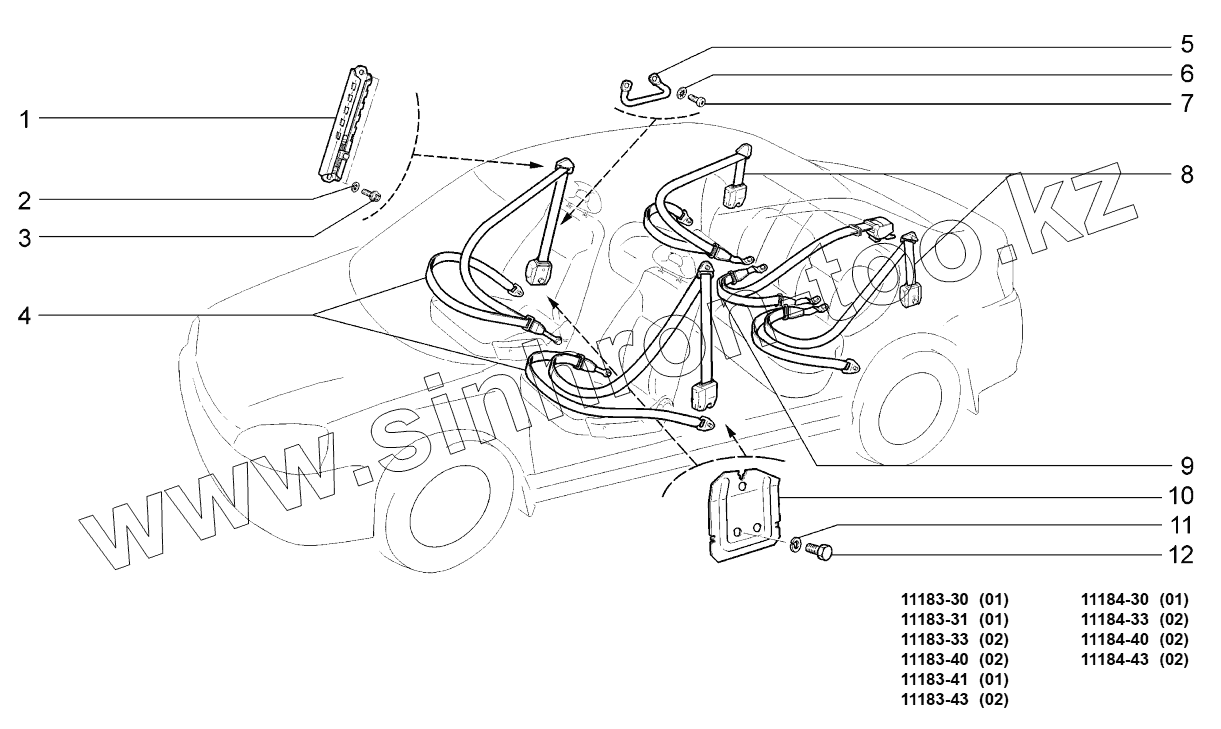 Каталог запасных частей к технике: ВАЗ LADA KALINA 1118. Ремни безопасности;Seat belt