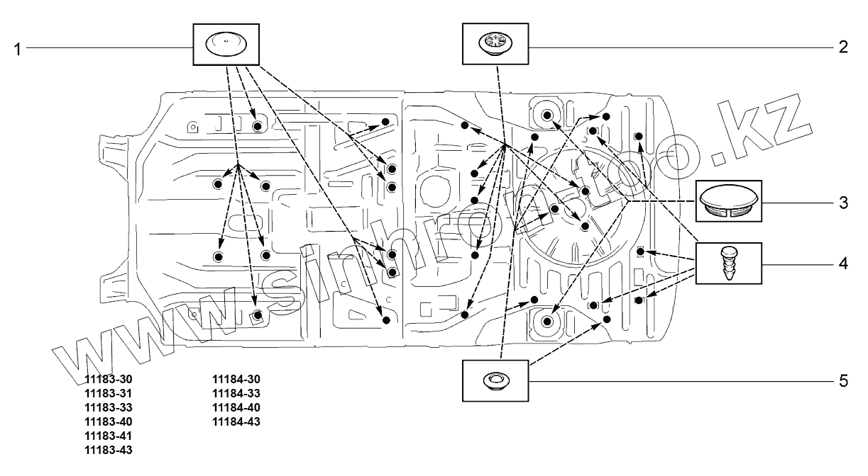 Каталог запасных частей к технике: ВАЗ LADA KALINA 1118. Схема установки заглушек;Plug Layout