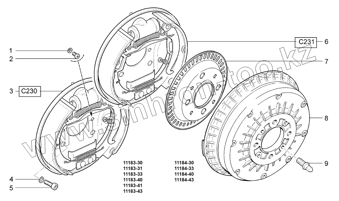 Каталог запасных частей к технике: ВАЗ LADA KALINA 1118. Тормоза задние;Rear brakes