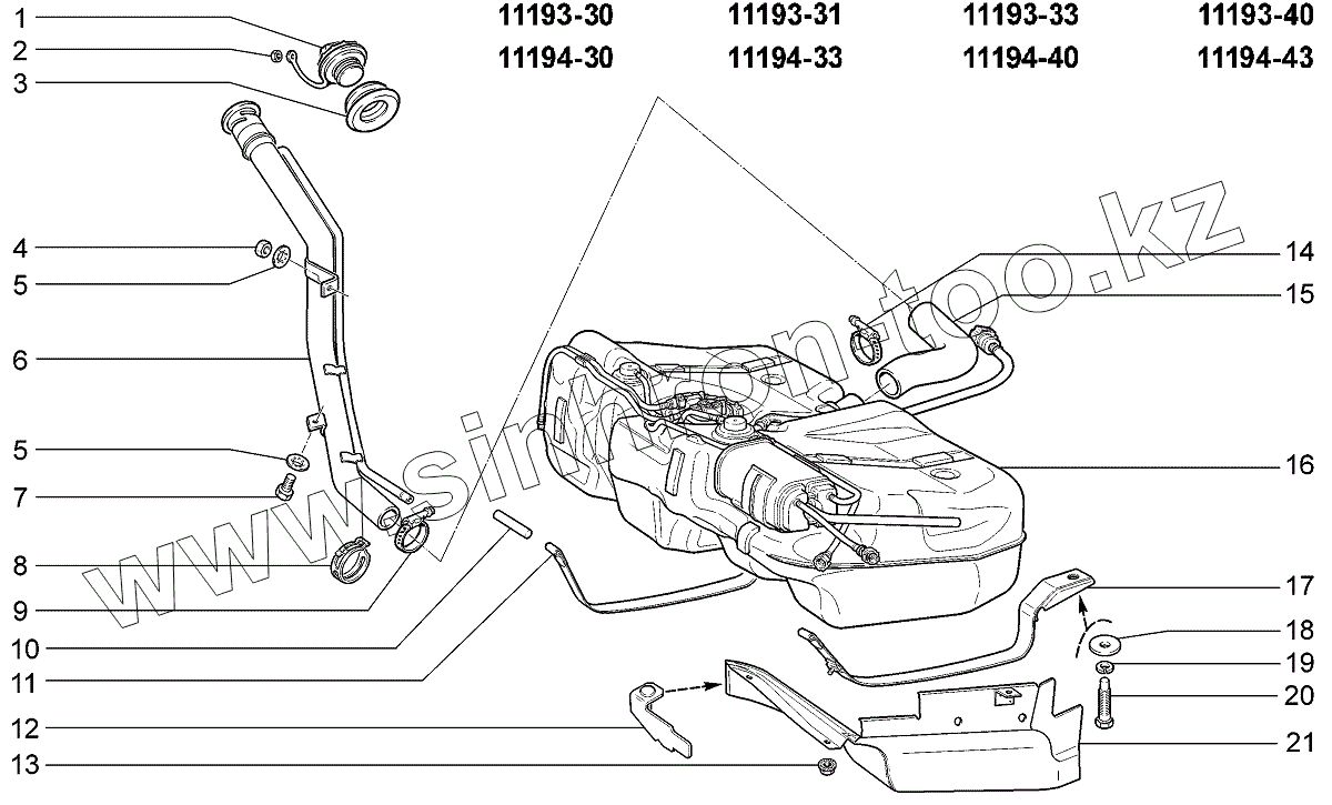 Каталог запасных частей к технике: ВАЗ LADA Kalina 1119. Бак топливный