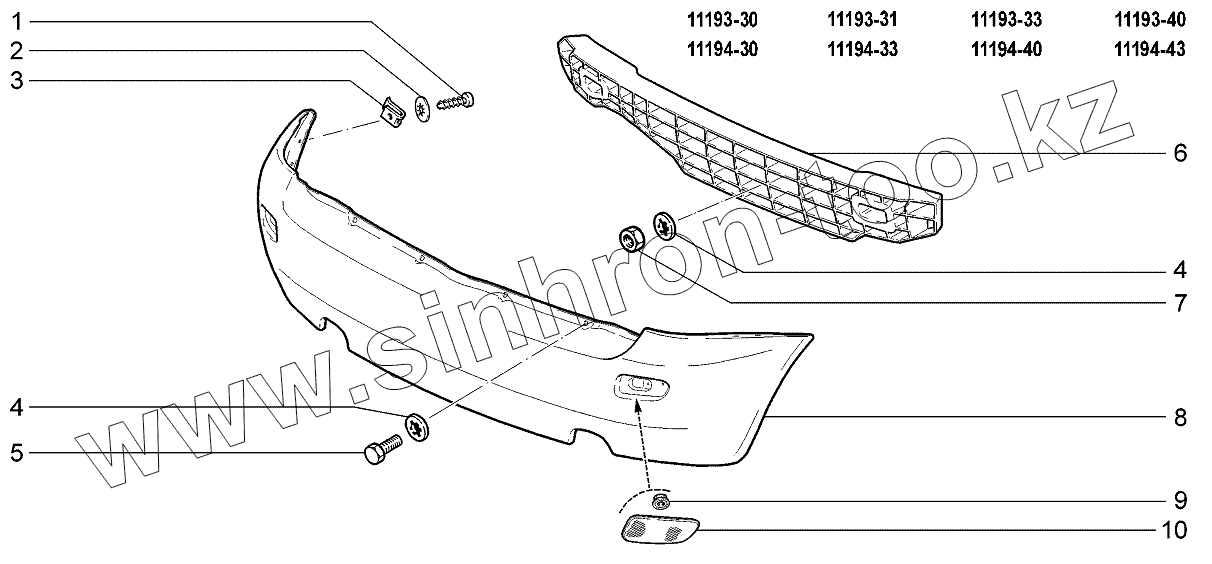 Каталог запасных частей к технике: ВАЗ LADA Kalina 1119. Бампер задний