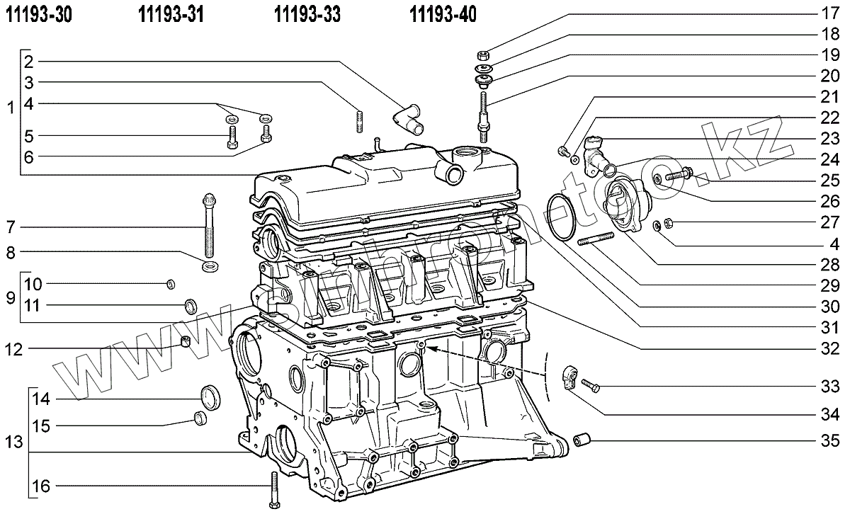 Каталог запасных частей к технике: ВАЗ LADA Kalina 1119. Блок цилиндров и головка блока