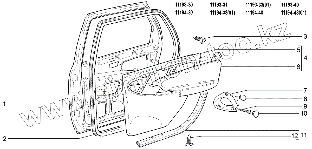 Каталог запасных частей к технике: ВАЗ LADA Kalina 1119. Двери задние