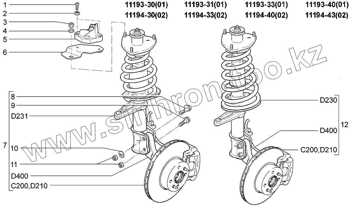 Каталог запасных частей к технике: ВАЗ LADA Kalina 1119. Элементы передней подвески