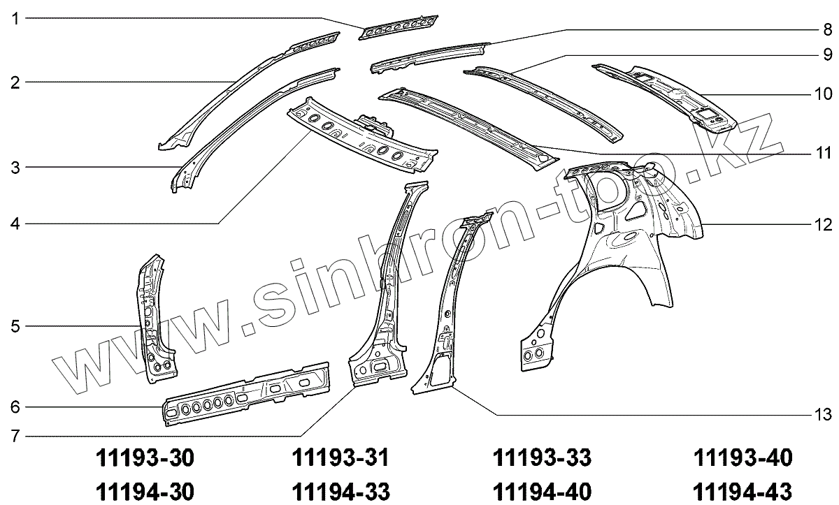 Каталог запасных частей к технике: ВАЗ LADA Kalina 1119. Каркас боковины и задка