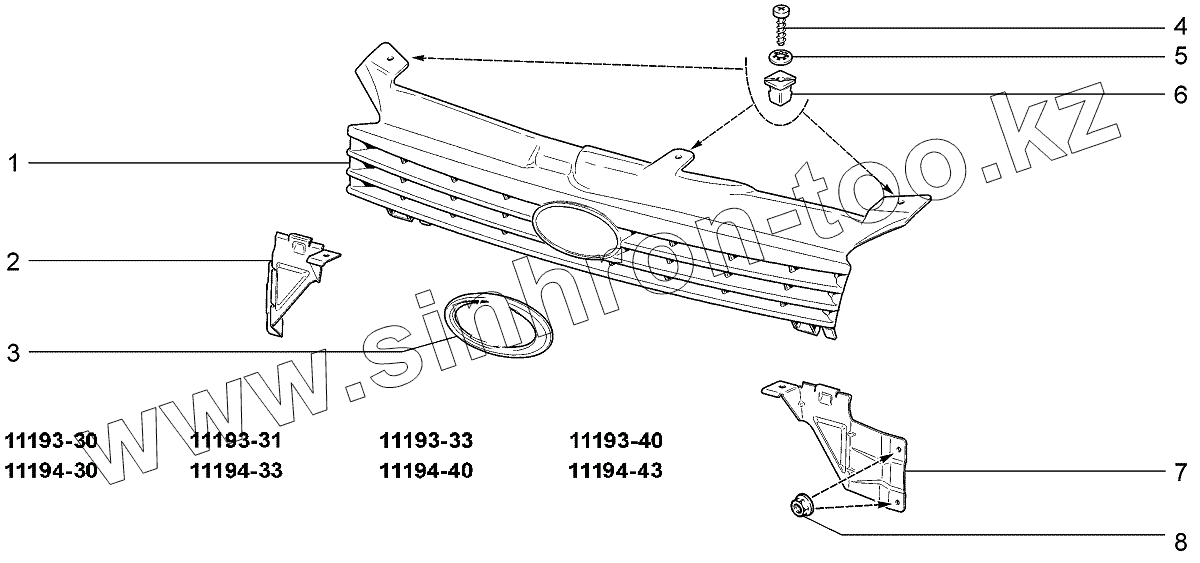 Каталог запасных частей к технике: ВАЗ LADA Kalina 1119. Облицовка радиатора
