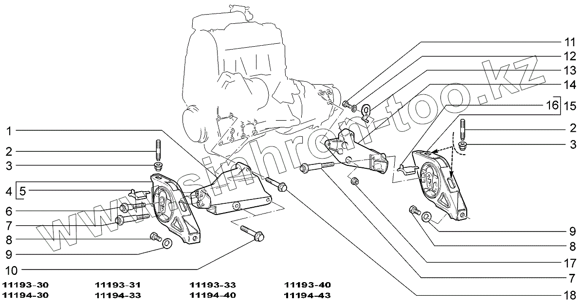 Каталог запасных частей к технике: ВАЗ LADA Kalina 1119. Подвеска двигателя