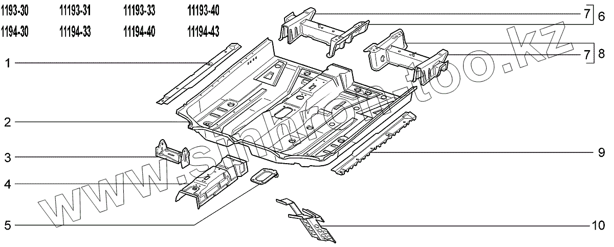 Каталог запасных частей к технике: ВАЗ LADA Kalina 1119. Пол передний