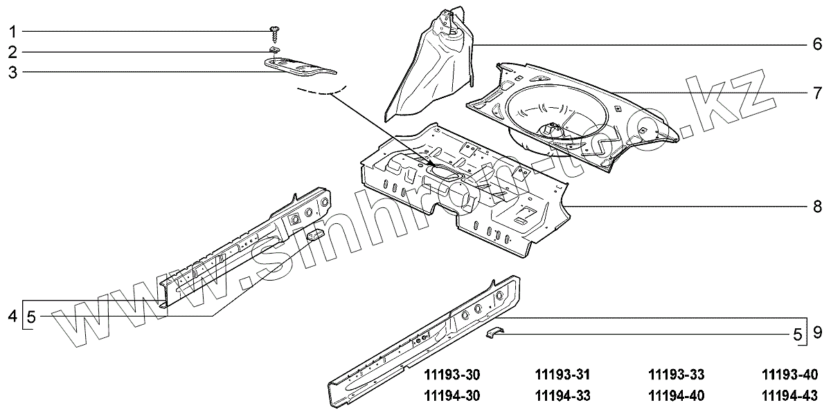 Каталог запасных частей к технике: ВАЗ LADA Kalina 1119. Пол задний