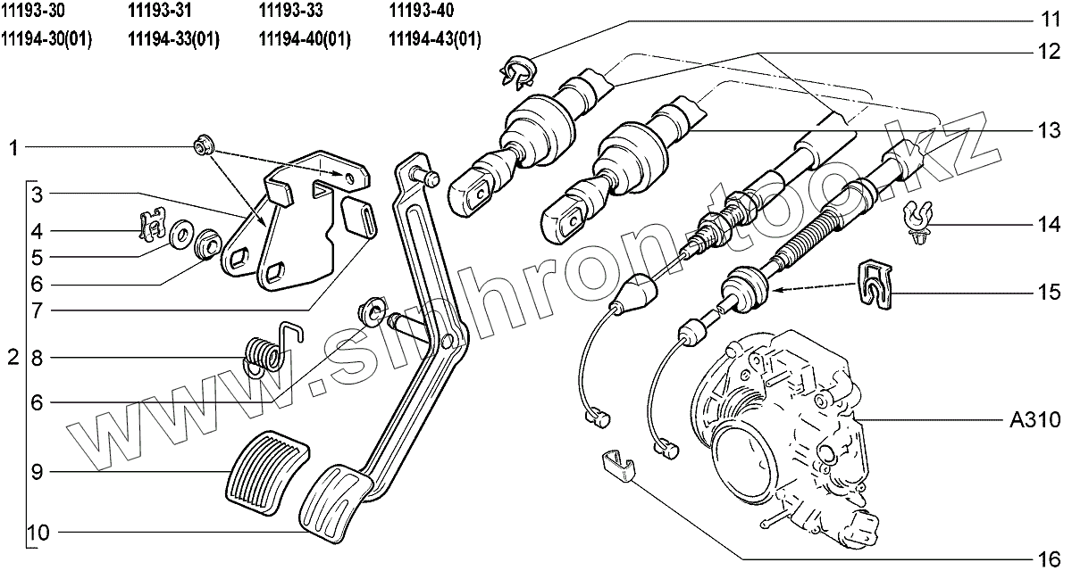 Каталог запасных частей к технике: ВАЗ LADA Kalina 1119. Привод акселератора