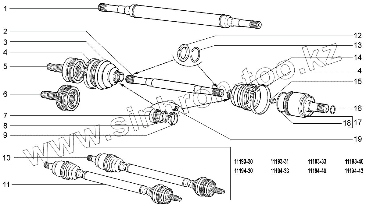 Каталог запасных частей к технике: ВАЗ LADA Kalina 1119. Привод передних колес