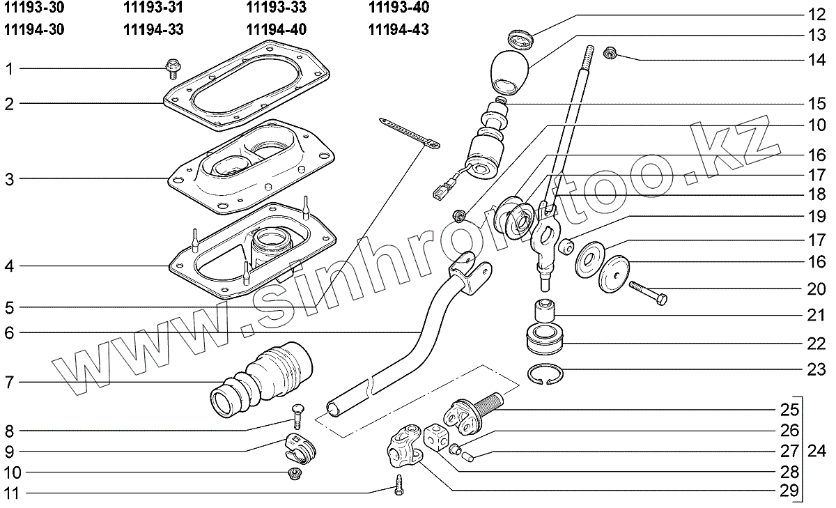 Каталог запасных частей к технике: ВАЗ LADA Kalina 1119. Привод переключения передач
