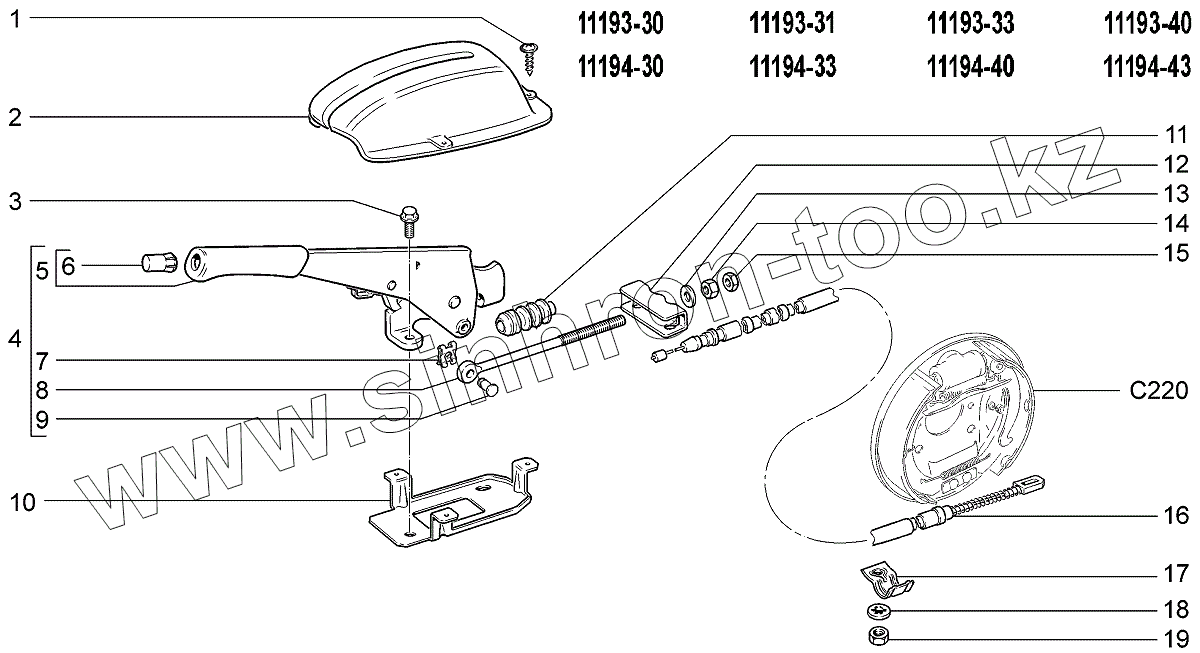 Каталог запасных частей к технике: ВАЗ LADA Kalina 1119. Привод стояночного тормоза