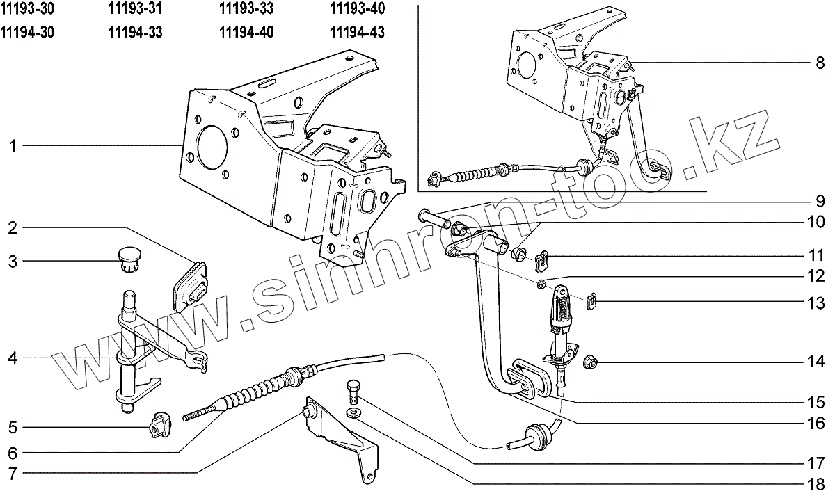 Каталог запасных частей к технике: ВАЗ LADA Kalina 1119. Привод сцепления