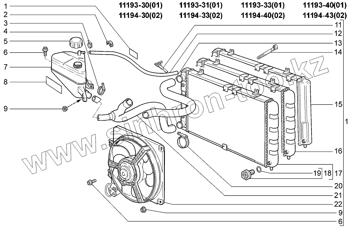 Каталог запасных частей к технике: ВАЗ LADA Kalina 1119. Радиатор и бачок расширительный