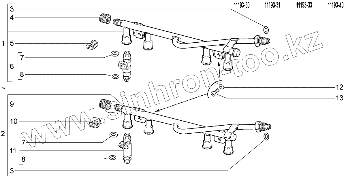 Каталог запасных частей к технике: ВАЗ LADA Kalina 1119. Рампа и форсунки