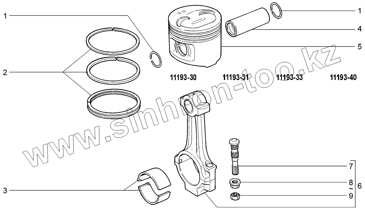Каталог запасных частей к технике: ВАЗ LADA Kalina 1119. Шатуны и поршни