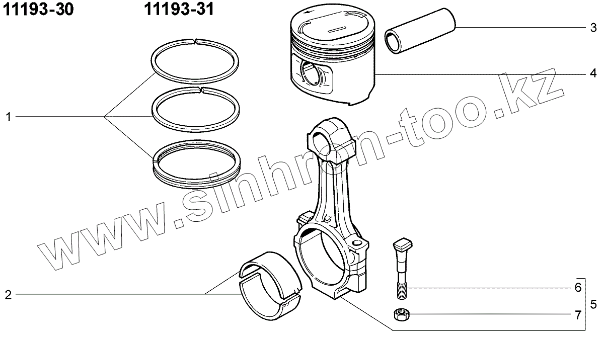 Каталог запасных частей к технике: ВАЗ LADA Kalina 1119. Шатуны и поршни