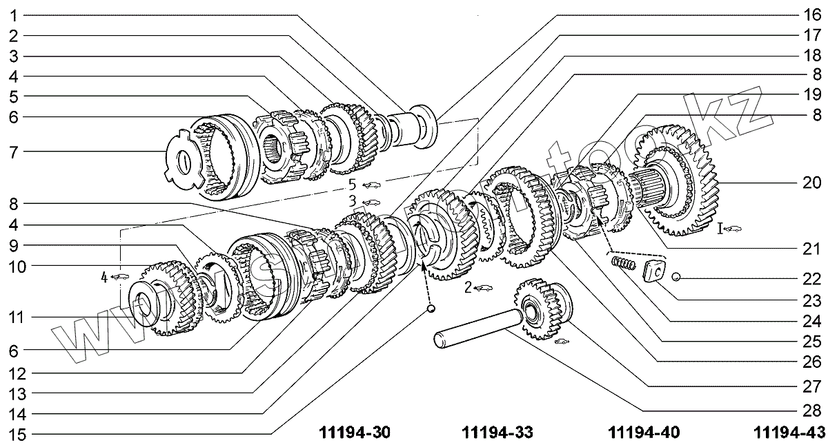 Каталог запасных частей к технике: ВАЗ LADA Kalina 1119. Шестерни коробки передач