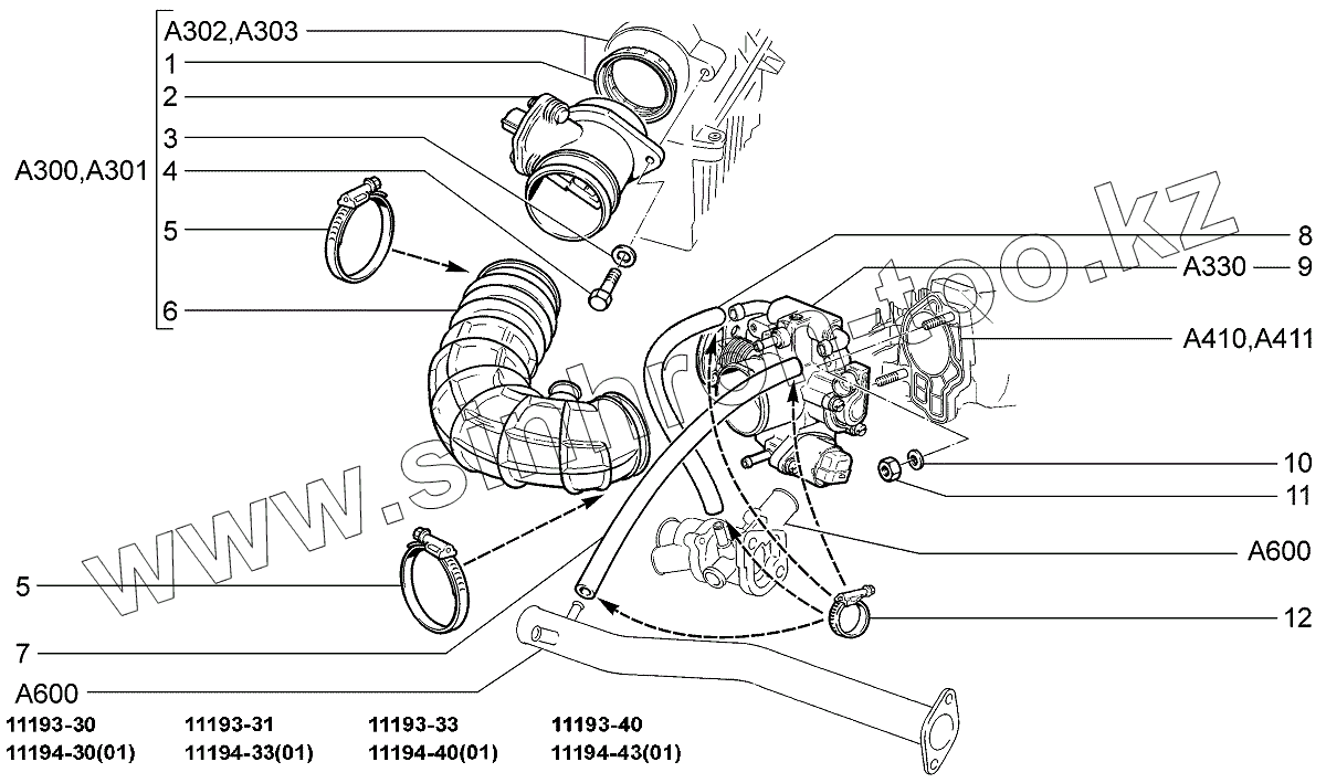Каталог запасных частей к технике: ВАЗ LADA Kalina 1119. Система подачи воздуха