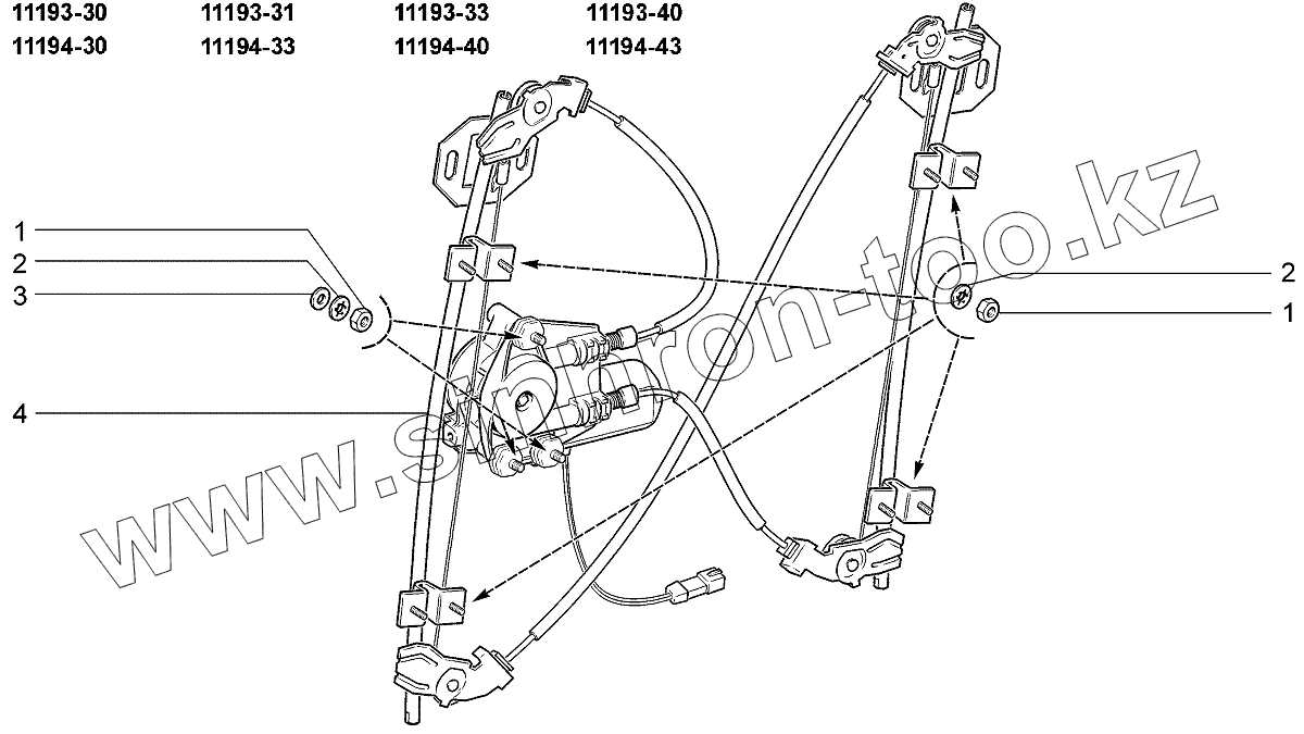 Каталог запасных частей к технике: ВАЗ LADA Kalina 1119. Стеклоподъемники передних дверей