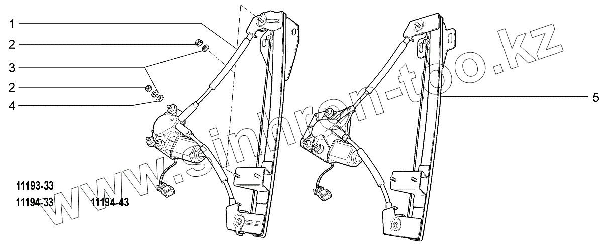 Каталог запасных частей к технике: ВАЗ LADA Kalina 1119. Стеклоподъемники задних дверей