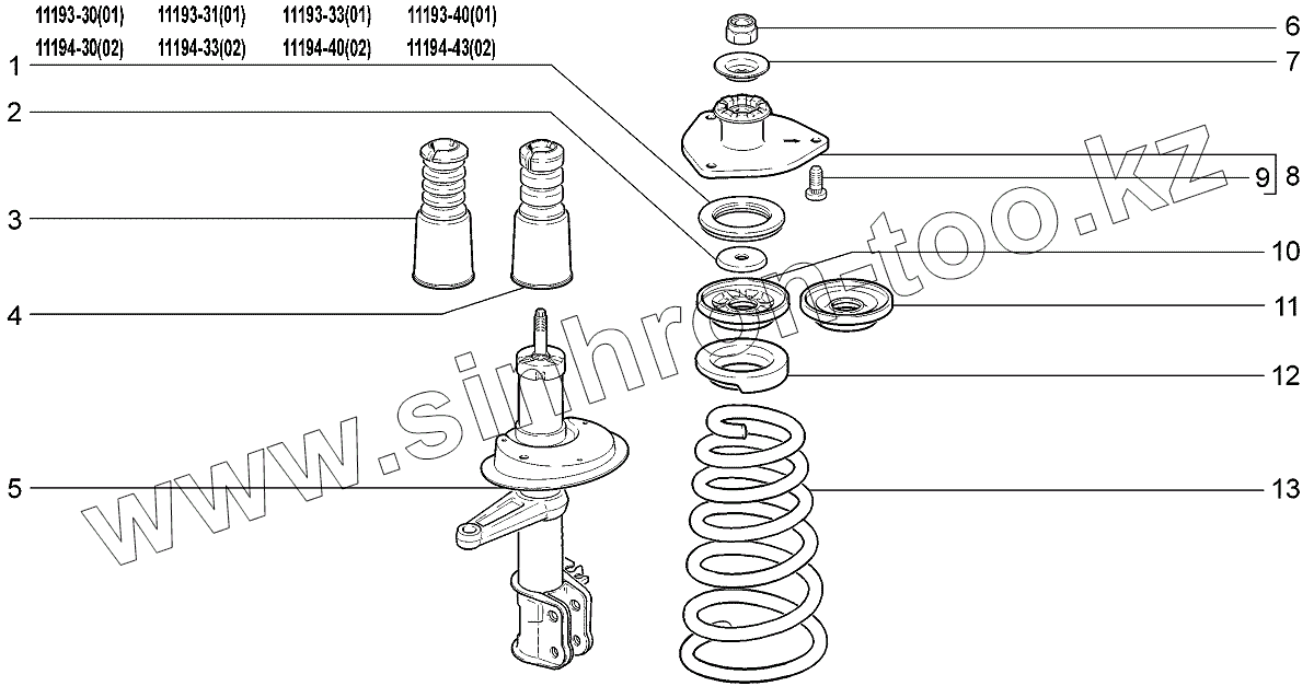 Каталог запасных частей к технике: ВАЗ LADA Kalina 1119. Стойки телескопические передней подвески