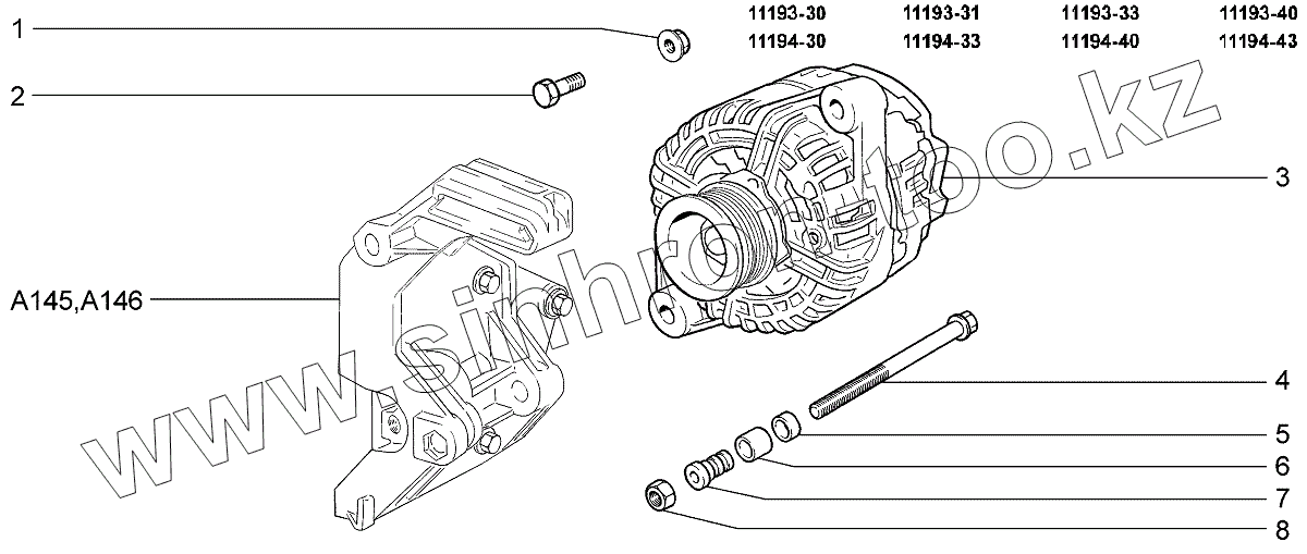 Каталог запасных частей к технике: ВАЗ LADA Kalina 1119. Установка генератора