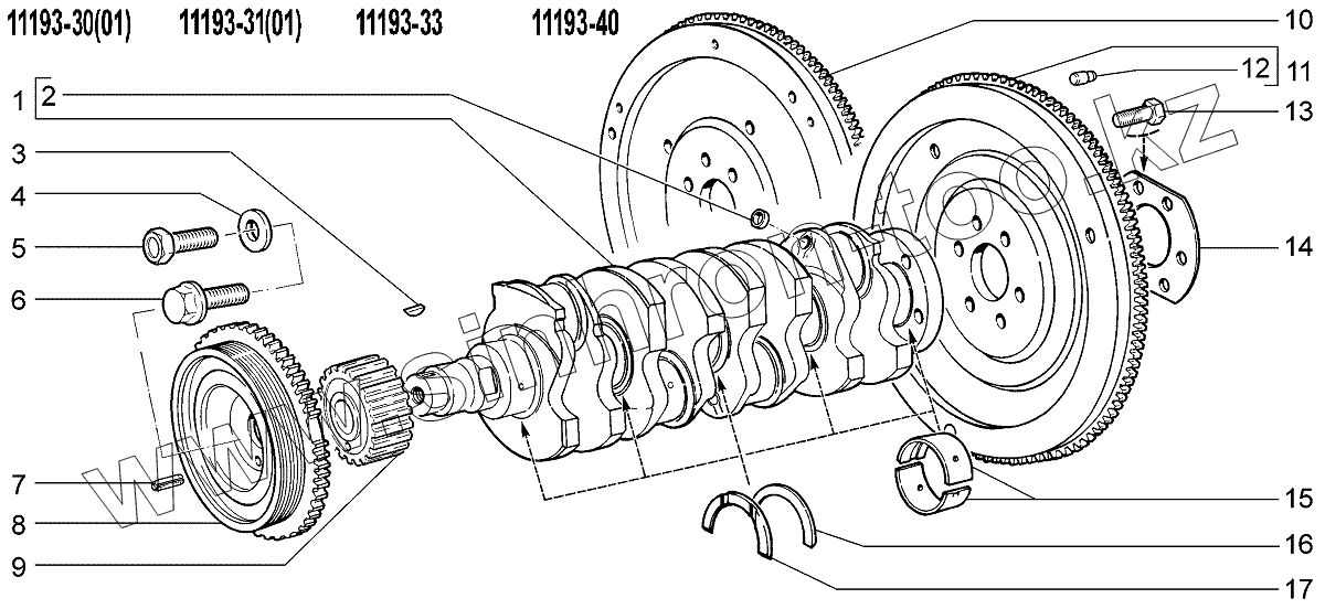 Каталог запасных частей к технике: ВАЗ LADA Kalina 1119. Вал коленчатый и маховик