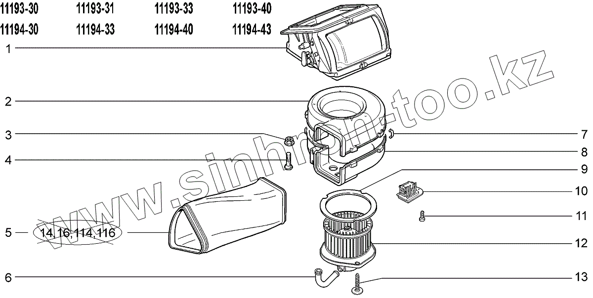 Каталог запасных частей к технике: ВАЗ LADA Kalina 1119. Вентилятор климатической установки