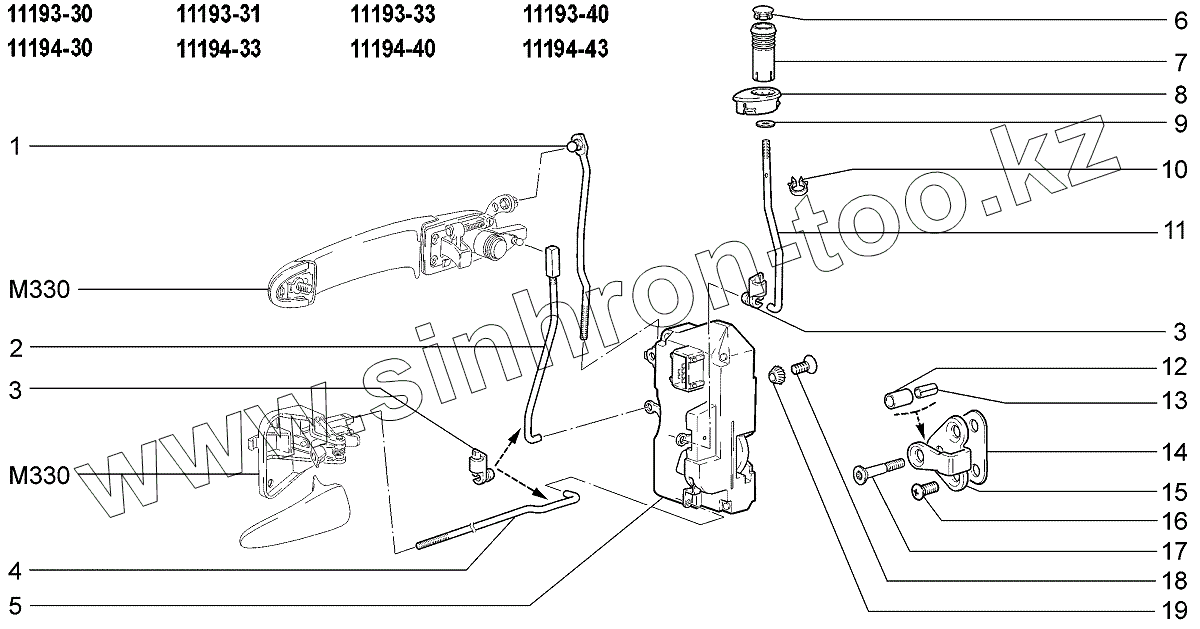 Каталог запасных частей к технике: ВАЗ LADA Kalina 1119. Замки передних дверей