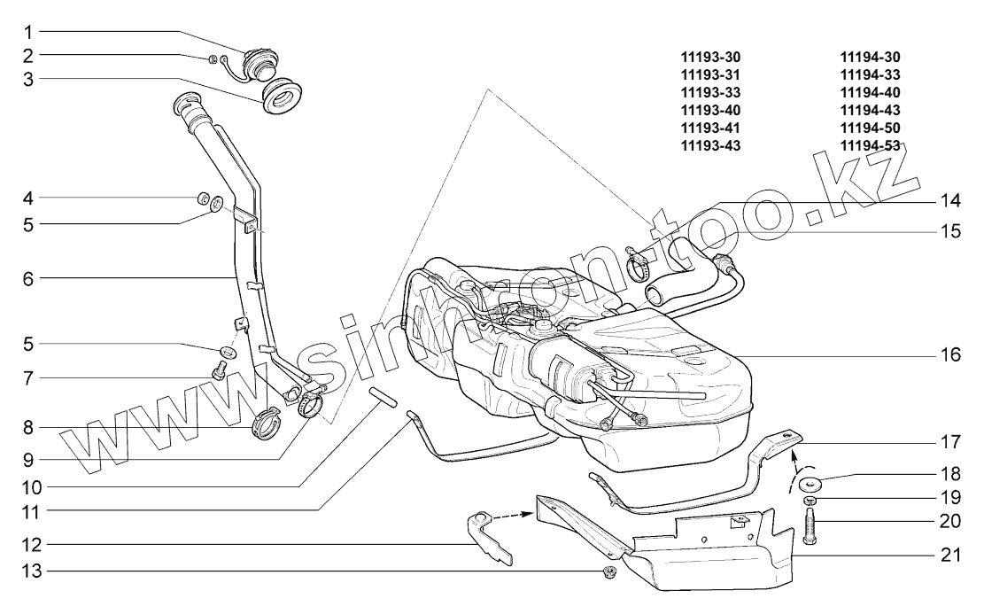 Каталог запасных частей к технике: ВАЗ LADA KALINA 1119. Бак топливный;Fuel tank