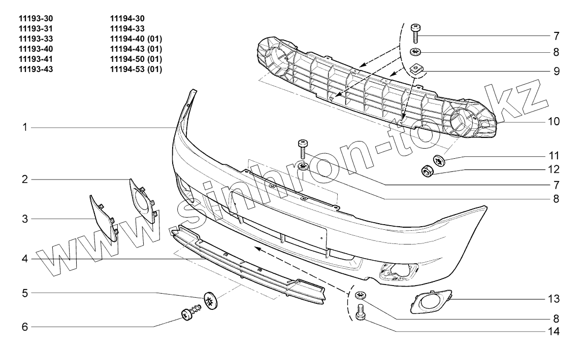 Каталог запасных частей к технике: ВАЗ LADA KALINA 1119. Бампер передний;Front bumper