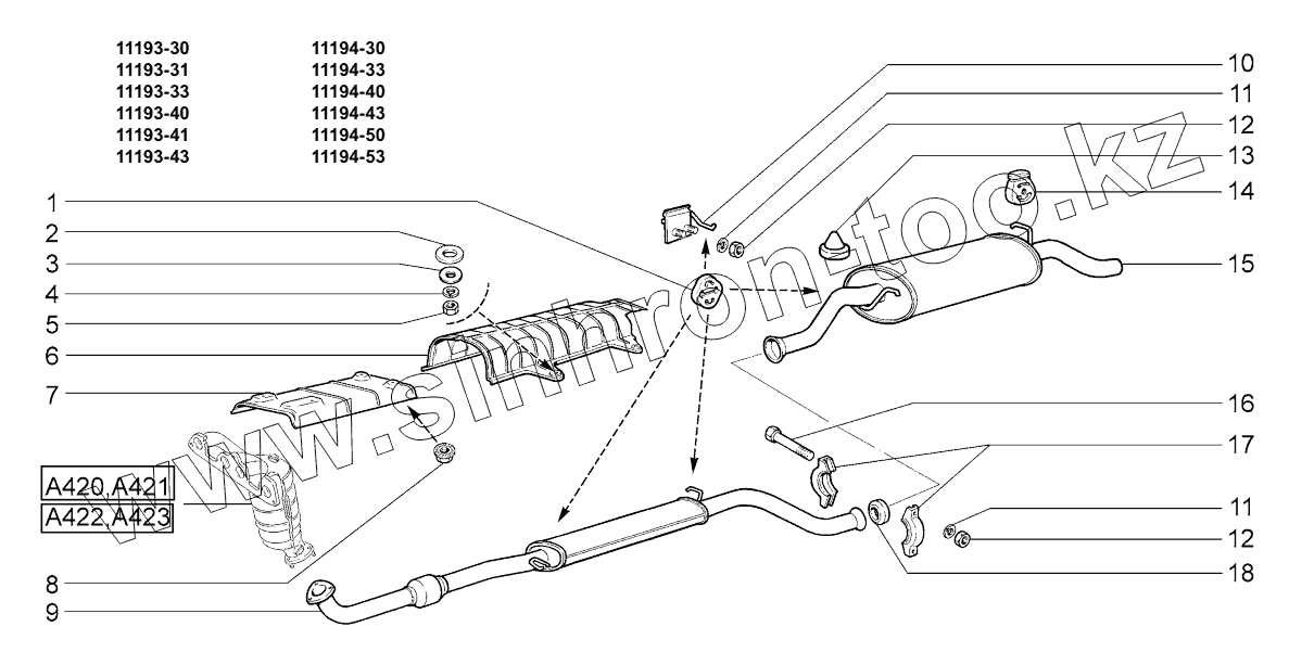Каталог запасных частей к технике: ВАЗ LADA KALINA 1119. Глушители;Mufflers