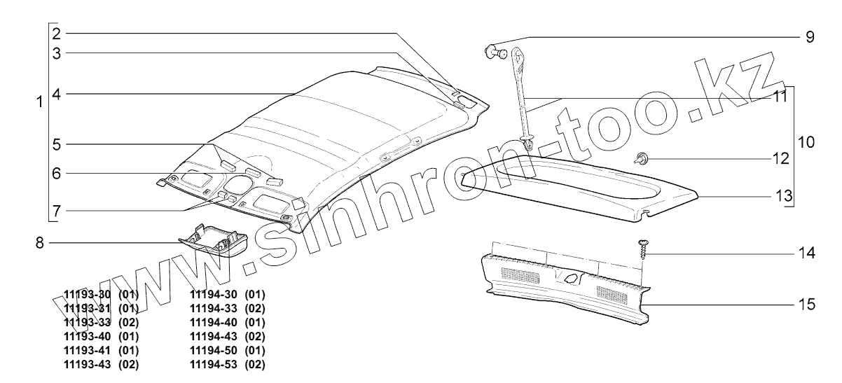 Каталог запасных частей к технике: ВАЗ LADA KALINA 1119. Обивка салона;Interior trim
